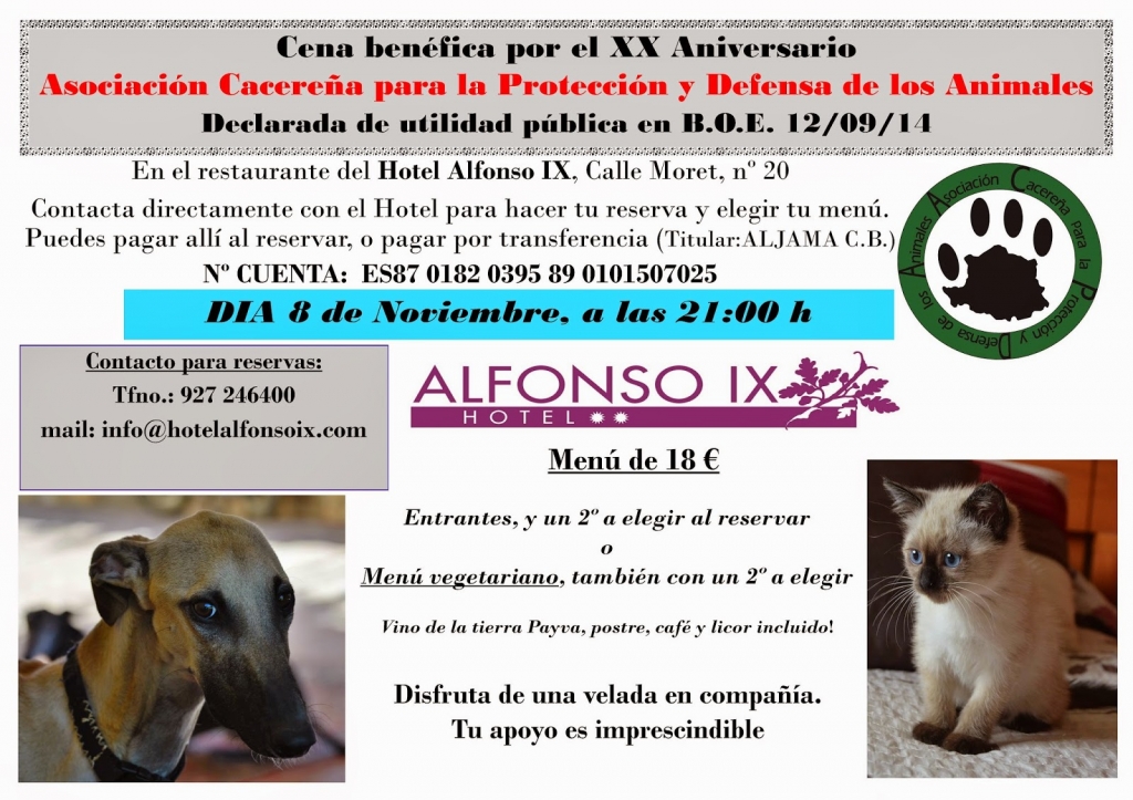 Cena XX Aniversario, el próximo sábado 8 os animamos a colaborar con nosotros y pasar una velada agradable En el