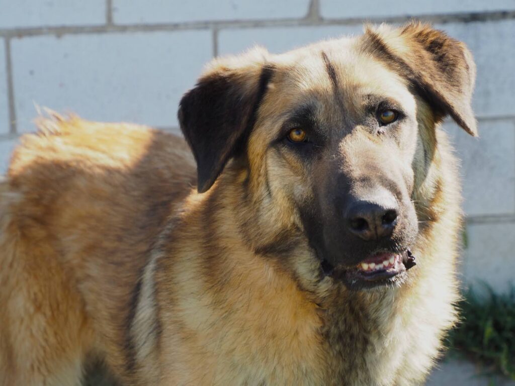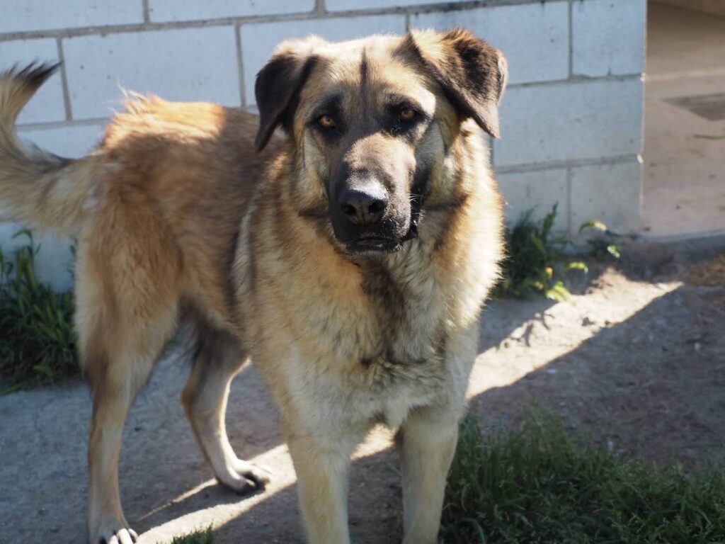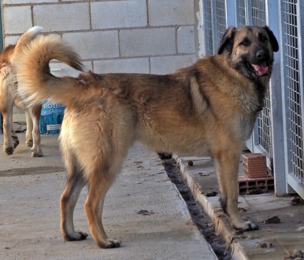 Muy cariñoso y sociable, activo, lleva mucho tiempo en un chenil en el refugio de Trujillo. Es un perro grandote y encantador