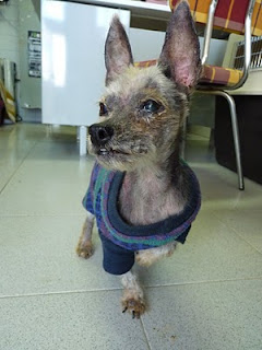 Quizás quieran adoptar a esta.. es una yorki, aunque no lo parezca.. supongo que no importará que solo tenga 6 dientes y le falte pelo, y sea viejecita. Pero es de raza.¿ la quiere alguien? O a lo mejor ya la quisieron, pero cuando se hacen viejos… da igual la raza y condición, los problemas de piel y salud han podido más que la sangre azul